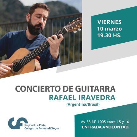 La Regional La Plata del Colegio de Fonoaudiólogos invita al concierto de guitarra de Rafael Iravedra
