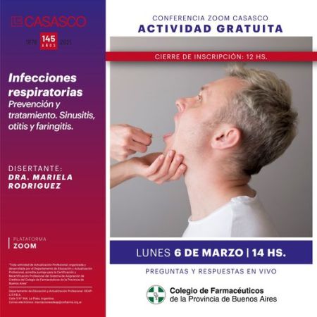 El Colegio de Farmacéuticos bonaerense invita al curso sobre «Infecciones respiratorias: prevención y tratamiento»