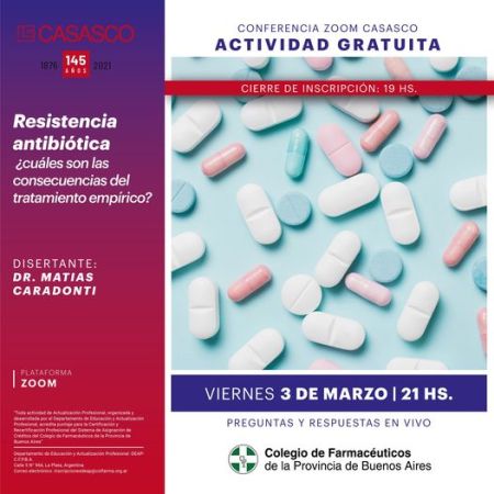 Se realizará la conferencia virtual «Resistencia antibiótica: ¿Cuáles son las consecuencias del tratamiento empírico?»