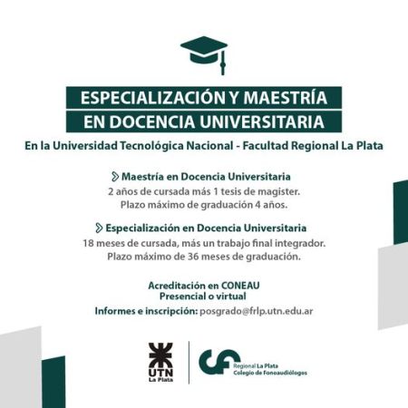 Posgrado: la Regional La Plata del COFOBA invita a la Especialización y Maestría en Docencia Universitaria dictada por la UTN