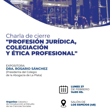 La Facultad de Ciencias Jurídicas y Sociales invita a la charla de cierre: «Profesión jurídica, colegiación y ética profesional»