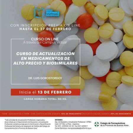 Está abierta la inscripción al curso virtual: «Actualización en medicamentos de alto precio y biosimilares»