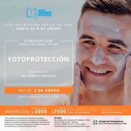 Continúa abierta la inscripción al Curso virtual de «Fotoprotección. Reedición 2023» del Colegio de Farmacéuticos bonaerense