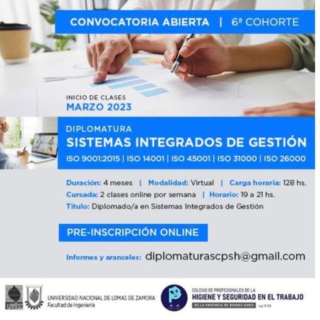 Seguridad e higiene: está abierta la inscripción a la 6ta Cohorte 2023 de la Diplomatura de Sistemas Integrados de Gestión