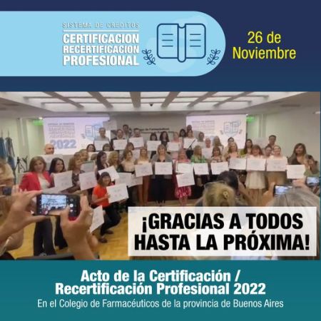 Se realizó el acto de entrega de los diplomas de Certificación y Recertificación Profesional en el Colegio de Farmacéuticos