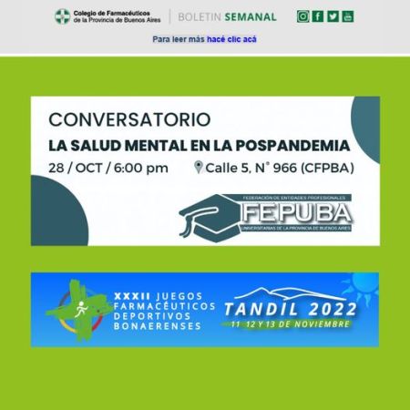 Está disponible el Boletín semanal de noticias del Colegio de Farmacéuticos de la Provincia de Buenos Aires