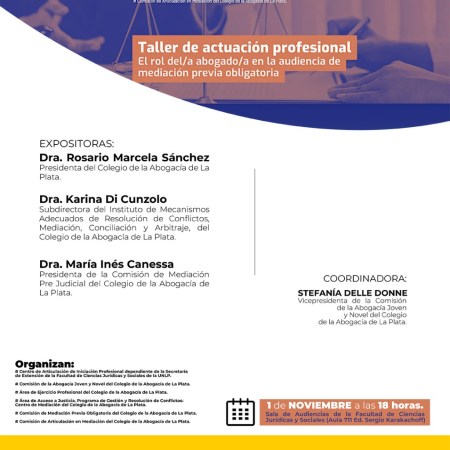 Taller de Actuación Profesional: «El Rol del/a Abogado/a en la Audiencia de Mediación Previa Obligatoria»