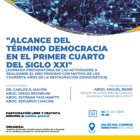 La Facultad de Derecho de la UNLP invita a la Jornada: «Alcance del Término Democracia en el primer cuarto del siglo XXI»