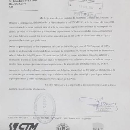 El SOEMLP solicitó la urgente convocatoria de la mesa paritaria a fin de lograr una recomposición salarial