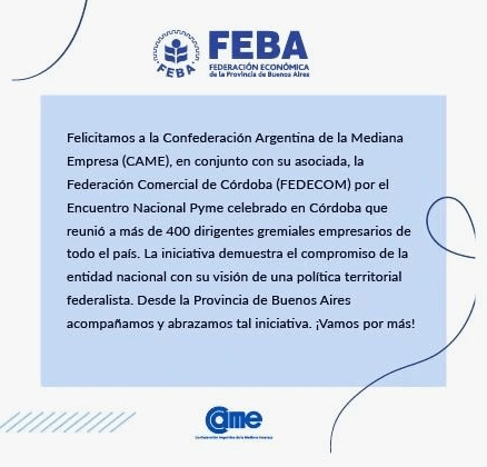 La Federación Económica bonaerense saludó a CAME por el Encuentro Nacional PyME celebrado en Córdoba