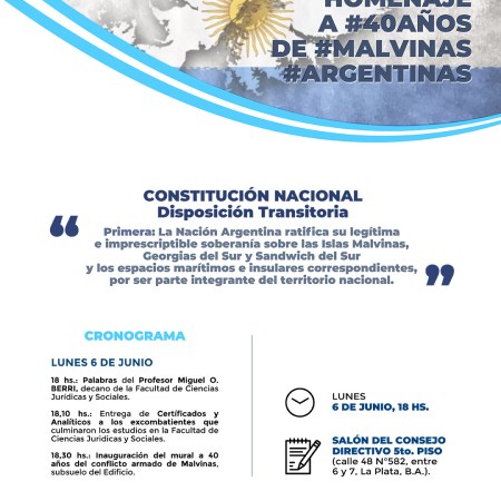 La Facultad de Ciencias Jurídicas y Sociales de la UNLP invita a participar del Homenaje a 40 años de Malvinas
