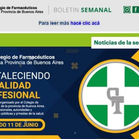Está disponible el Boletín Semanal de Noticias del Colegio de Farmacéuticos bonaerense