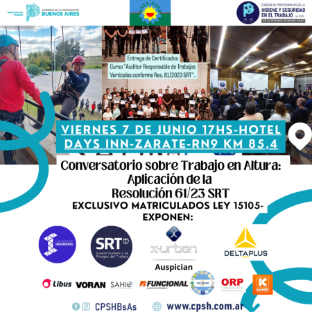 El Colegio de Profesionales de la Higiene y Seguridad en el Trabajo invita al conversatorio de «Trabajo en Altura»