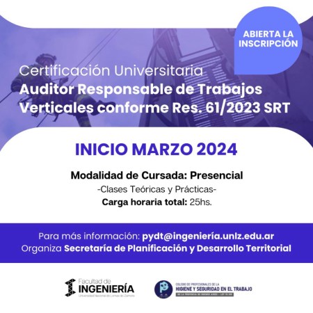 Seguridad e higiene: Está abierta la inscripción para la Certificación Universitaria en “Auditor Responsable de Trabajos Verticales