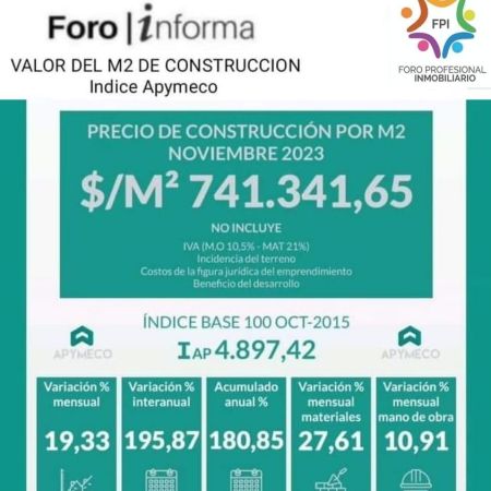 Gran La Plata: el valor de metro cuadrado construido promedió $741.341,65 en noviembre