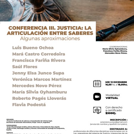 Se viene la Conferencia III “Justicia: la articulación entre saberes. Algunas aproximaciones”