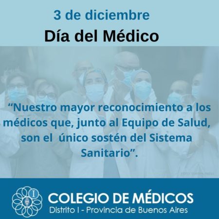 Colegio de Médicos Distrito I: “Nuestro mayor reconocimiento a quienes son el único sostén del sistema de Salud”