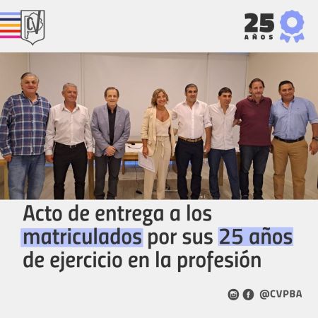 El Colegio de Veterinarios de la Provincia de Buenos Aires reconoció a matriculados con 25 años de ejercicio en la profesión