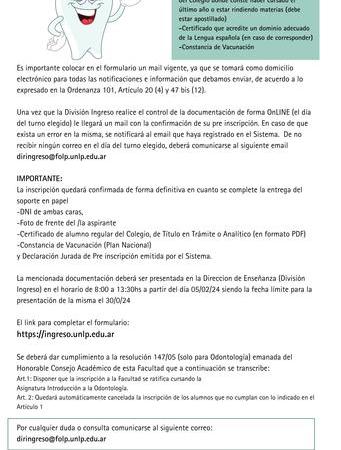 Ingreso 2024: Facultad de Odontología UNLP