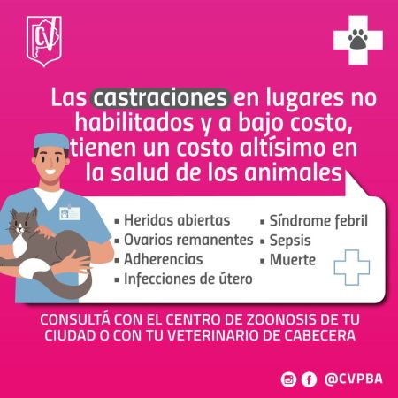 El Colegio de Veterinarios bonaerense advirtió a la población sobre los riesgos de las castraciones en lugares no habilitados