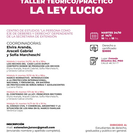 Comienza en la Facultad de Ciencias Jurídicas y Sociales de la UNLP el «Taller Teórico Práctico: La Ley Lucio»