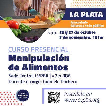 Hay una nueva fecha para el Curso de Manipulador de Alimentos abierto a todo público del CVPBA