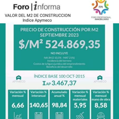 Gran La Plata: el metro cuadrado construido promedió en septiembre $524.869,35