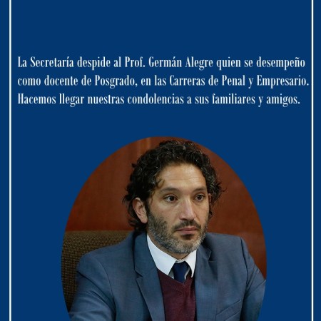 El posgrado de la Facultad de Ciencias Jurídicas y Sociales de la UNLP despidió con profundo dolor al Prof. Germán Alegre