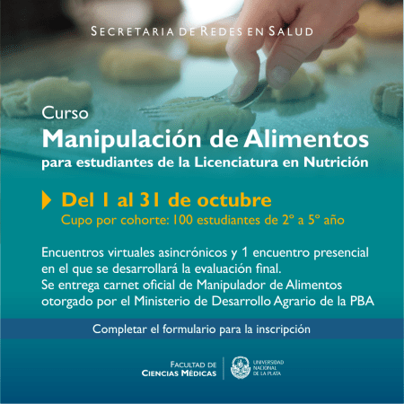 Se realizará un Curso de Manipulación de Alimentos para estudiantes de la Licenciatura en Nutrición de la UNLP