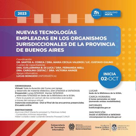 Comienza en octubre una capacitación sobre «Nuevas Tecnologías empleadas en los organismos jurisdiccionales de la Provincia de Bs. As.»