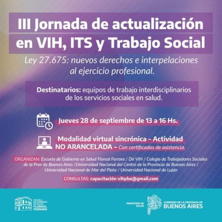 El CATSPBA invita a la III Jornada de actualización en VIH, ITS y Trabajo Social “Ley 27.675: nuevos derechos e interpelaciones al ejercicio profesional”