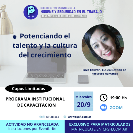 El Colegio de Profesionales de Higiene y Seguridad invita a la capacitación: “Potenciando el talento y la cultura del crecimiento”