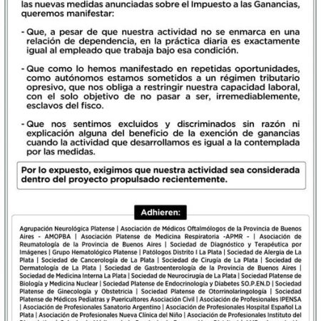Solicitada de Agremiación Médica Platense al Ministro de Economía de la Nación, Sergio Massa