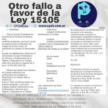Colegio de Profesionales de la Higiene y Seguridad de la Provincia de Buenos Aires: nuevo fallo a favor de la Ley 15105