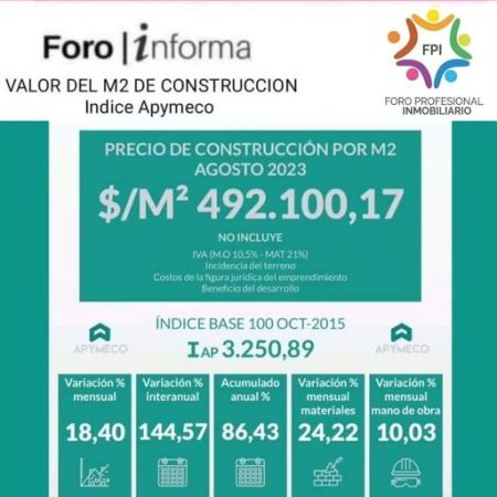 Gran La Plata: el metro cuadrado construido promedió en agosto los $492.100,17