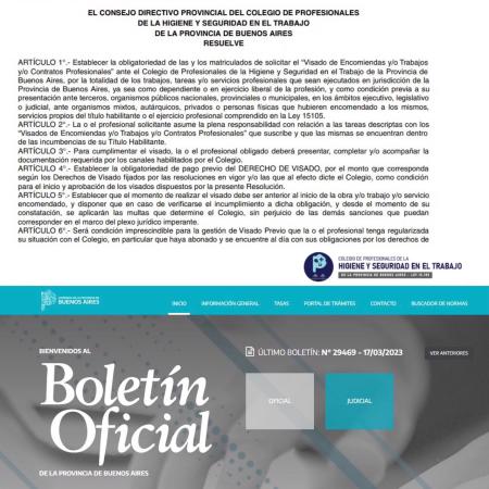 Higiene y seguridad: profesionales que ejerzan en la provincia deberán realizar el visado de encomiendas, trabajos o contratos ante el CPHS