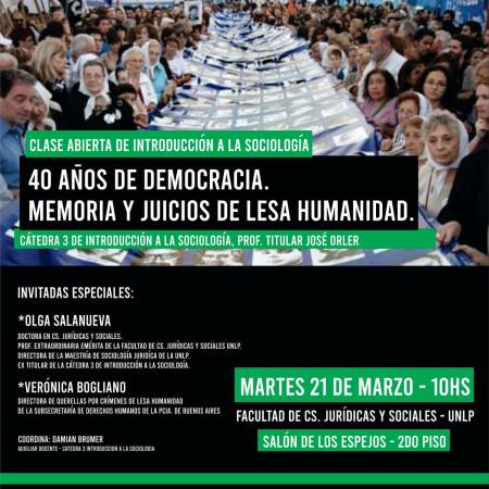 Clase Abierta de Introducción a Sociología: «40 años de democracia. Memoria y Juicios de Lesa Humanidad»