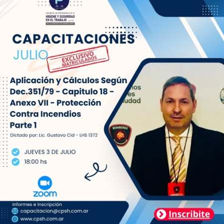 El CPHS invita a la capacitación «Aplicación y Cálculos según Dec. 351/79. Protección contra Incendios»
