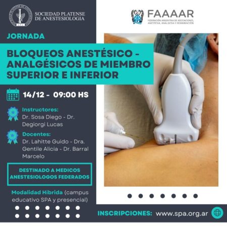 La Sociedad Platense de Anestesiología invita a una Jornada sobre «Bloqueos Anestésicos»