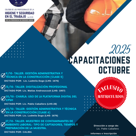 El Colegio de Profesionales de la Higiene y Seguridad presentó las capacitaciones del mes de octubre