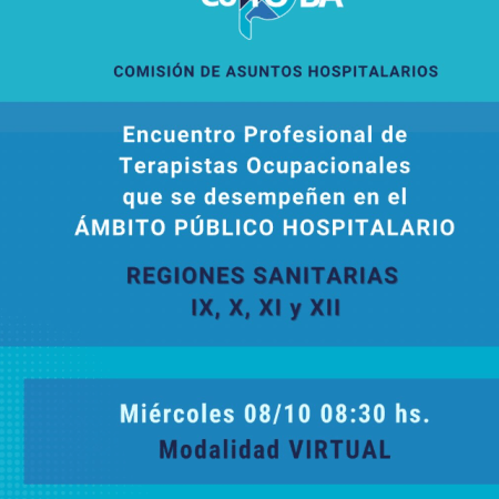 Se realizará el «Encuentro Profesional para Terapistas Ocupacionales del Ámbito Público Hospitalario»