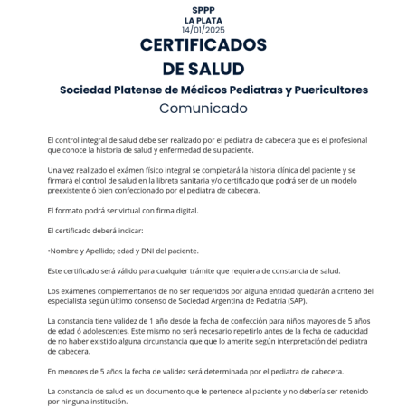 Certificados de Salud: El Distrito I del Colegio de Médicos se manifestó en defensa de la salud integral del paciente