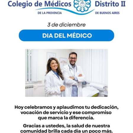El Colegio de Médicos Distrito II saludó a los colegas en su día: «aplaudimos su dedicación y vocación de servicio»