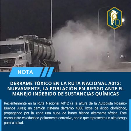 Derrame tóxico en la Ruta Nacional A012: «Nuevamente, la población en riesgo ante el manejo indebido de sustancias»