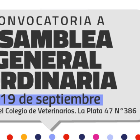El 19 de septiembre se realizará la Asamblea General Ordinaria del Colegio de Veterinarios de la Provincia de Buenos Aires