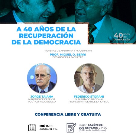 La Facultad de Ciencias Jurídicas y Sociales de la UNLP invita a la conferencia «A 40 años de la recuperación de la Democracia»