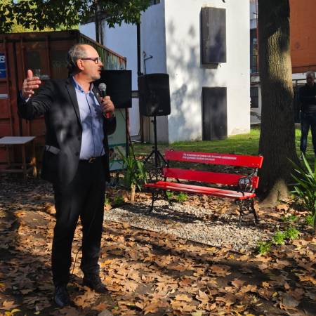 La Facultad de Odontología inauguró un banco rojo en un acto conmemorativo de la lucha contra la violencia de género