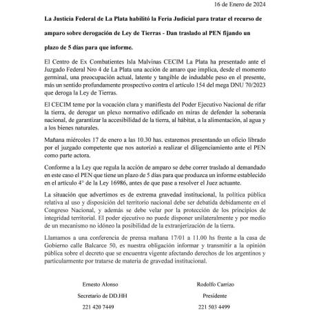 El CECIM La Plata realizará el 17 de enero una conferencia de prensa