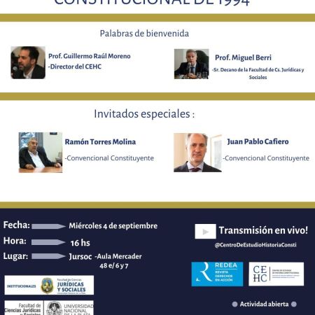 A 30 Años de la Reforma Constitucional de 1994, la Facultad de Derecho organiza una charla con sus protagonistas
