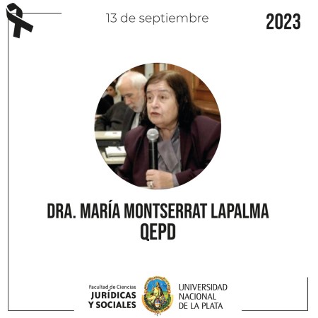 La Facultad de Ciencias Jurídicas de la UNLP despidió con pesar a la Dra. María Montserrat Lapalma